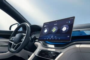 - Bảng điều khiển trung tâm hiện đại với màn hình cảm ứng xoay đa hướng kích thước 15.6 inch.